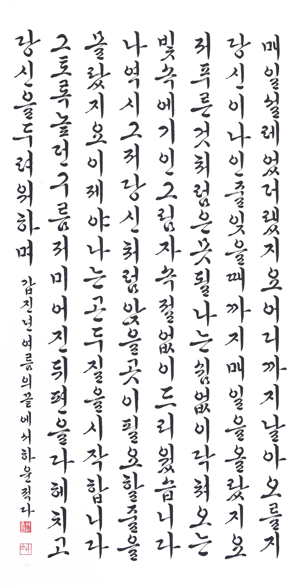 매일 설레었더랬지요 어디까지 날아오를지 당신이 나인 줄 잊을 때까지 매일을 올랐지요 저 푸른 것처럼은 못 될 나는 쉼없이 닥쳐오는 빛속에 기인 그림자 속절없이 드리웠습니다 나 역시 그저 당신처럼 앉을 곳이 필요할 줄을 몰랐지요 이제야 나는 곤두질을 시작합니다 그토록 높던 구름 저미어진 뒤편을 다 헤치고 당신을 두려워하며