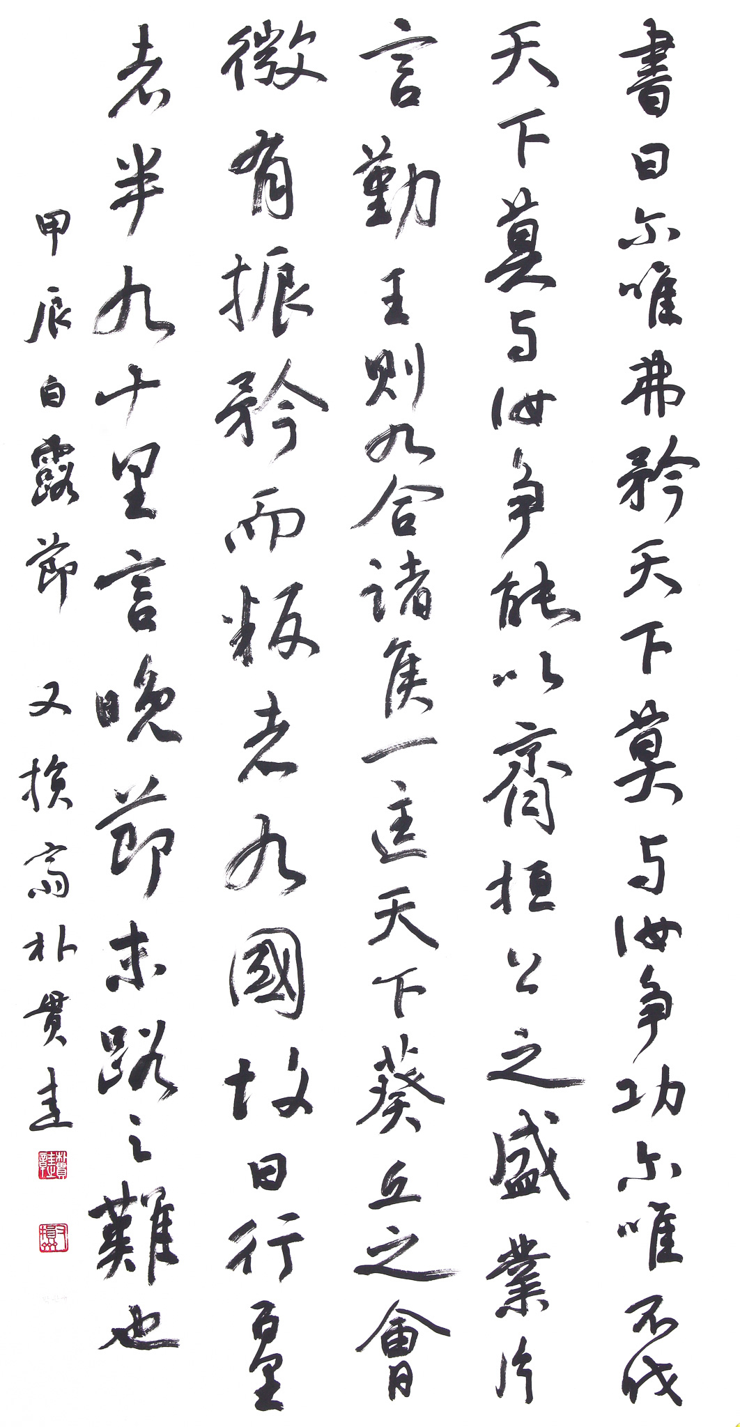 書曰: 爾唯弗矜, 天下莫與汝爭功. 爾唯不伐, 天下莫與汝爭能. (서왈: 이유불긍, 천하막여여쟁공. 이유불벌, 천하막여여쟁능.) 서경(書經)에 말하기를, “네가 다만 스스로 어질다고 자랑하지 않는다면, 천하가 너와 공을 다투지 않을 것이요. 네가 다만 공을 다투지 않는다면, 천하가 너와 능함을 다투지 않는다.”라고 하였다. 以齊桓公之盛業, 片言勤王, 則九合諸侯, 一匡天下, 葵丘之會, 微有振矜, 而叛者九國. (이제환공지성업, 편언근왕, 즉규합제후제후, 일광천하, 규구지회, 미유진긍, 이반자구국.) 제나라 환공의 성업으로 한 두마디로 근왕(勤王)하여 제후(諸侯)를 규합(九合)해 천하를 통일하였으나, 규구(葵丘)의 회합에서 교만한 태도가 있다고 하여, 배반하는 자가 아홉 나라나 되었다. 故曰: 行百里者半九十里, 言晚節末路之難也. (고왈: 행백리자반구십리, 언만절말로지난야.) 그리하여 옛말에 이르기를, “백 리를 가고자 하는 자는 구십 리를 반으로 여긴다.”라고 하였으니, 이는 만절(晩節)과 말로의 어려움을 말한 것이다.